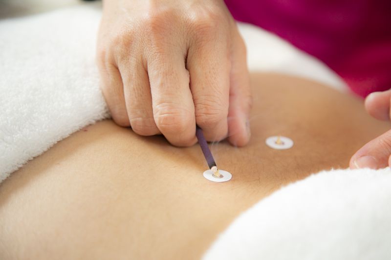 ほとんどのお灸は、灸点紙(皮膚に貼り熱を緩和して跡を残さないようにするもの)を貼って行います。やけどを起こさないように注意を払って施術を行いますのでご安心ください。熱い場合は、すぐにお伝えください。